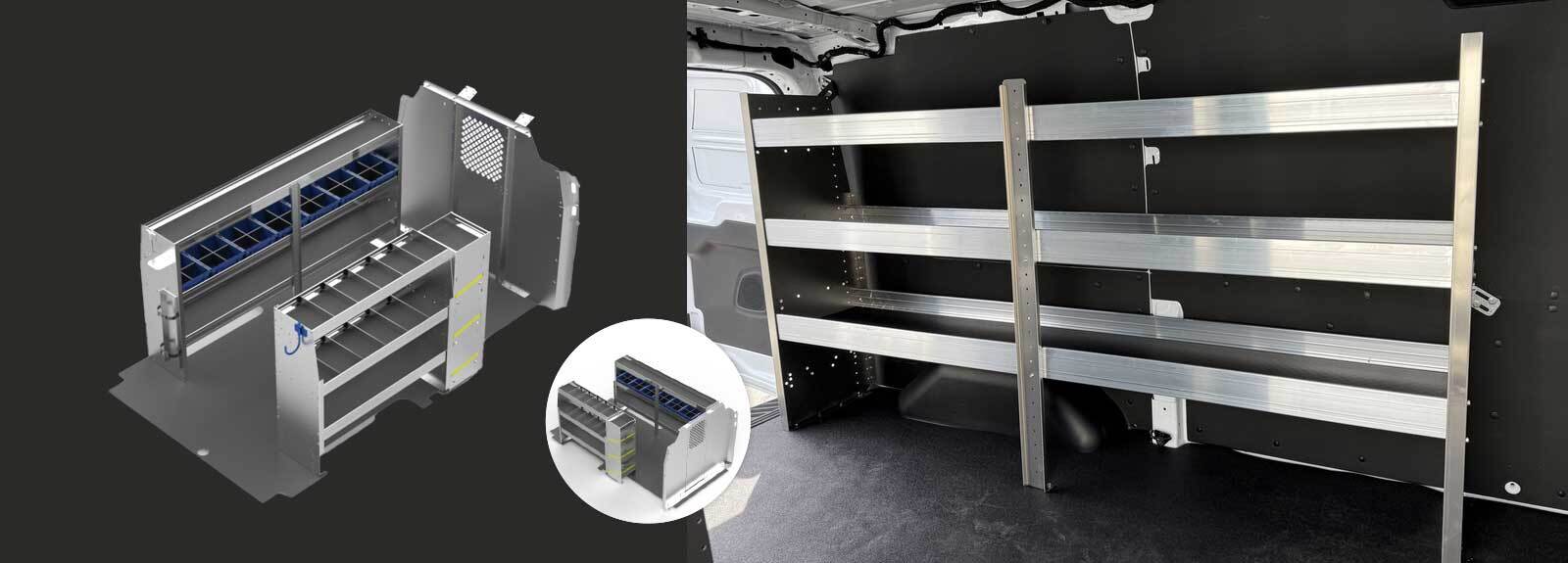 Each system is designed to match the interior dimensions of the vehicle, helping maximize storage space while maintaining usable aisle room inside the cargo area.