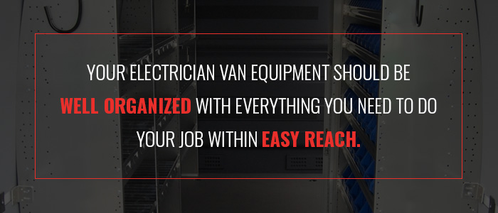Your van is like your office. Instead of sitting behind a desk every day, your van is your place of business. Like an office, the equipment in your electrician van should be well organized with everything you need to do your job within reach.