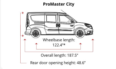 Depending on the vehicle, that does not necessarily mean available space for shelving! There are roof curves, gas fills, and body contours that can interfere with using 100% of the space. Partitions encroach on the available space as well. The guide will show you what is practical to install in your vehicle. *Wheelbase is measured from the center of the front wheels to the centre of the back wheels.